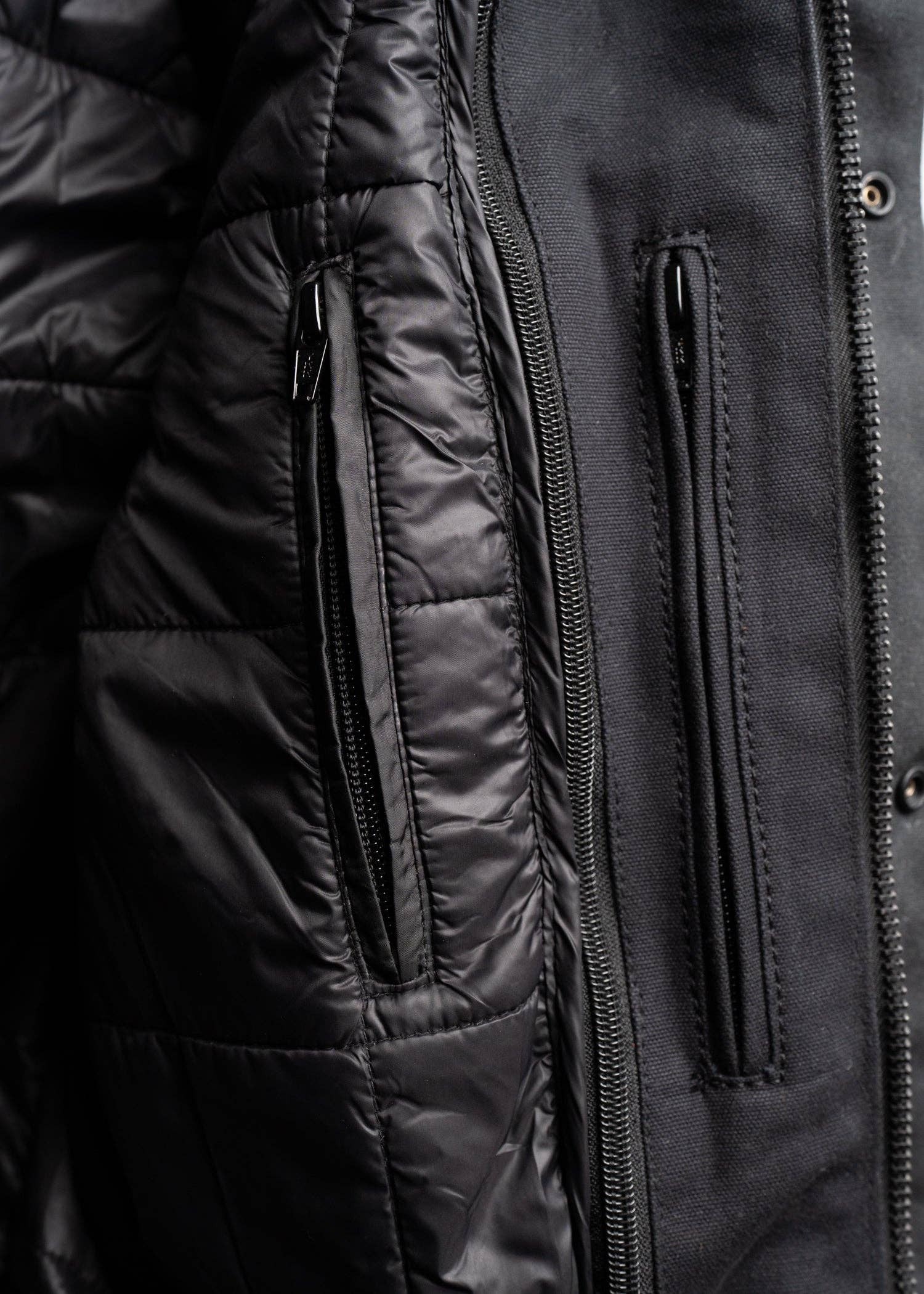* Heavy duty Talon front zipper closure + front placket with snap button